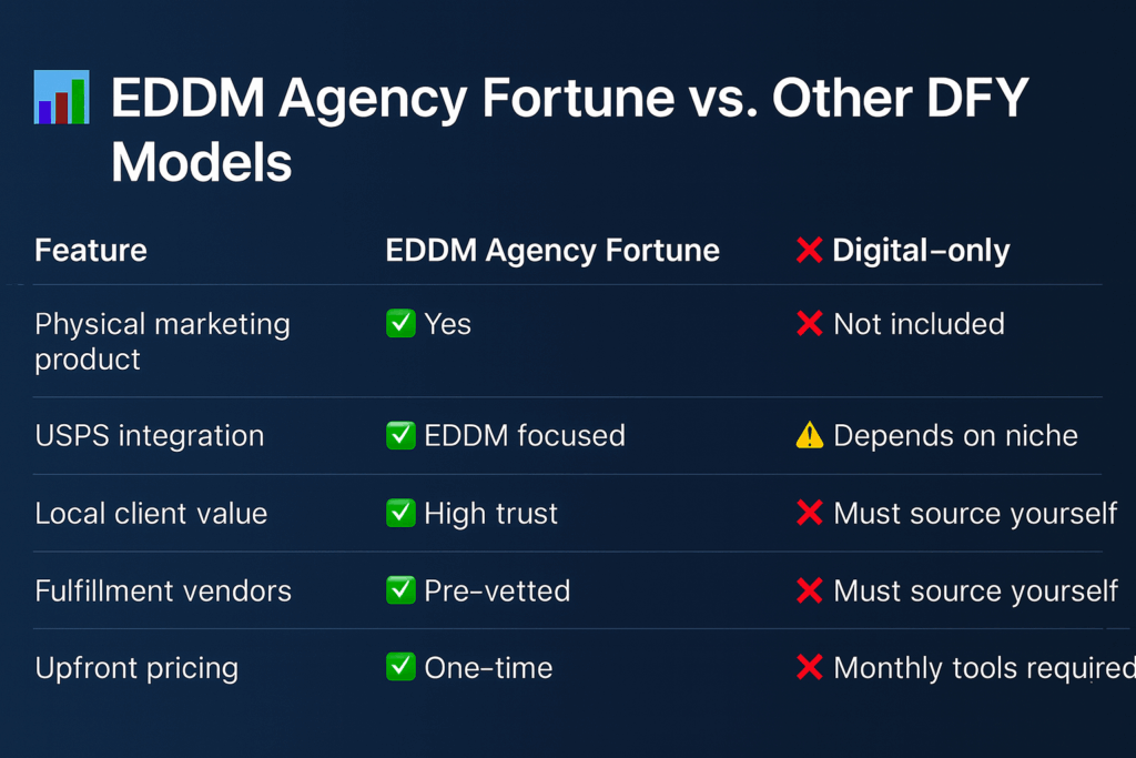 This EDDM Agency Fortune Review shows how to launch a postcard marketing business using DFY tools, templates, and USPS Every Door Direct Mail—no tech or ad budget needed.